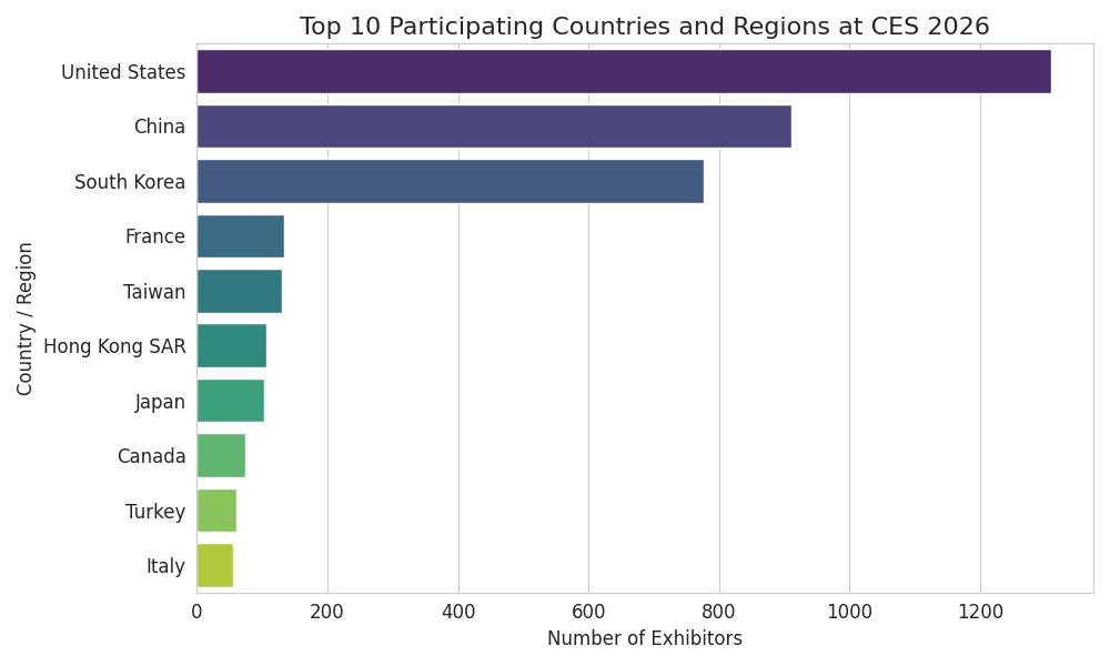Top Exhibiting Countries and Regions While the United States leads with a massive domestic presence, international participation is staggering. East Asian hardware giants and European startup hubs are heavily represented.